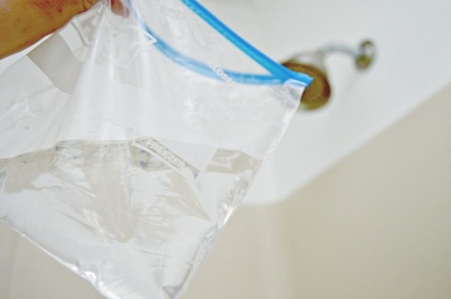 Поместите насадку душа в пакет с уксусом и закрепите резинкой или завязкой для волос. Оставьте на 30 минут.