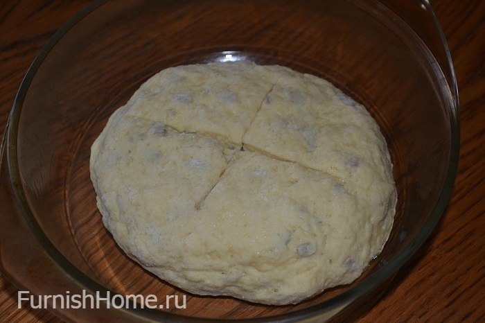 В центре колобка делаем х-образный надрез и оставляем так тесто минут на 5-7.