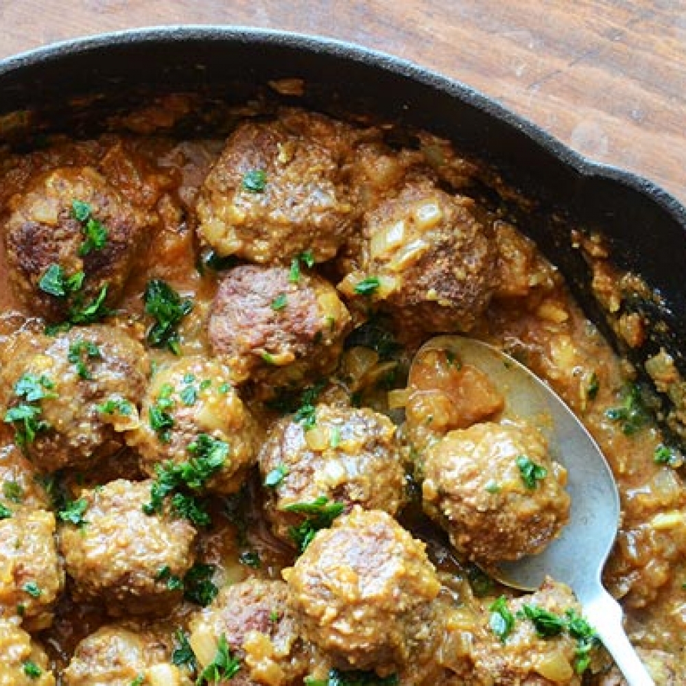 Эти тефтели понравятся даже тем, кто не любит баранину за ее специфический привкус. Секрет — в ярком пикантном соусе карри! Для полной гармонии подайте к тефтелям рис басмати или нежирную сметану. Просто объедение!