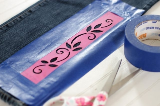 Обклейте его весь скотчем, чтобы при нанесении отбеливателя вы не испачкали джинсы в других местах.