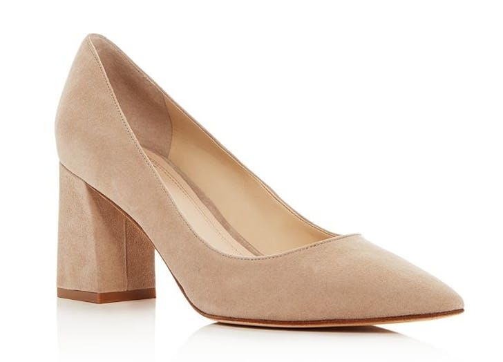 Возьмите пример с Кейт Миддлтон и рассмотрите привлекательные остроносые туфли на низком каблуке. Их определенно можно носить на работу или даже на свадьбу на открытом воздухе. Кстати, отмечает Руссо, нейтральный оттенок легко носить с темными оттенками и яркими цветами (включая принты).