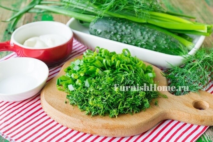 Перья зеленого лука помоем, порежем тонкими кольцами.
