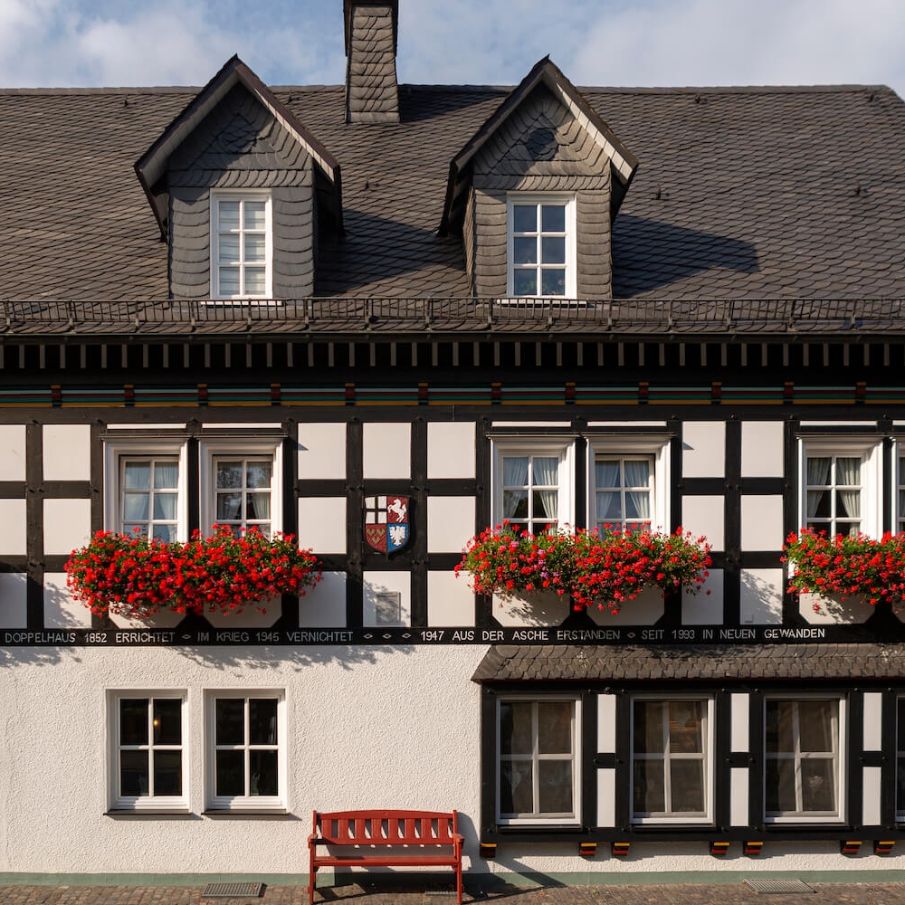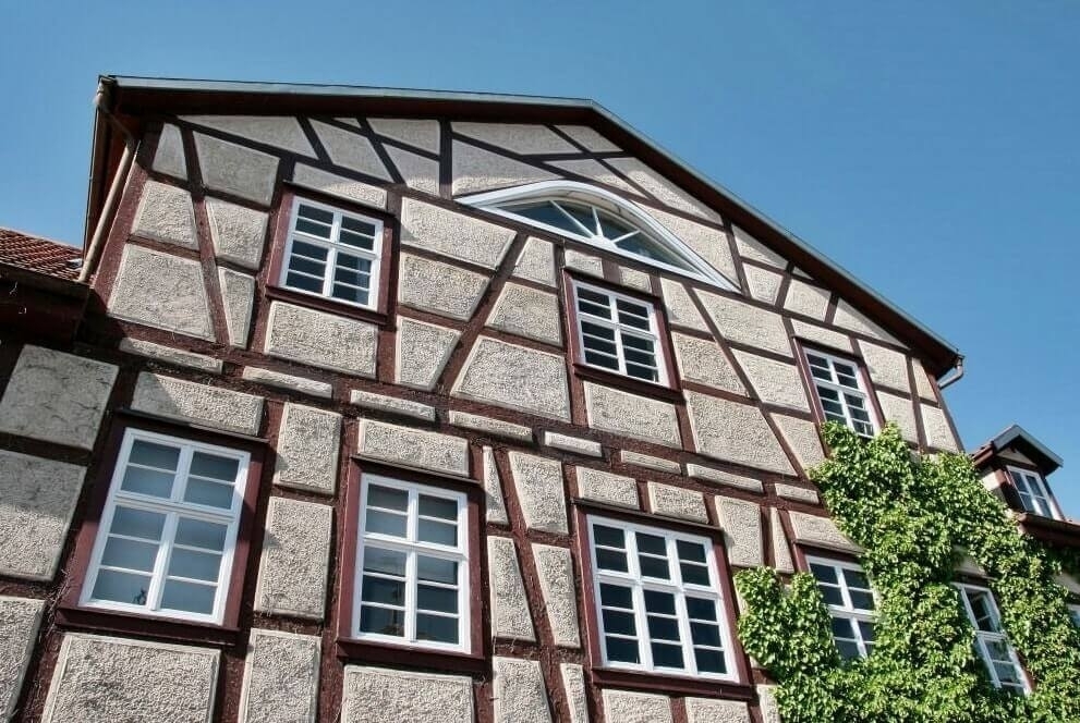 Стиль фахверк начал свое существование в 1347 году на территории Германии. Первый дом в этом стиле нашли в старом городе Кведлинбурге. Это построение заслужило звание архитектурного памятника. Со временем этот вид домов охватил большую часть Европы и северные страны. Преимущество этих зданий - технология, которая экономит древесину. Каркас домов сделан из прочных вертикальных столбов, горизонтальных балок и раскосов по диагонали. Надежная и экономичная технология.