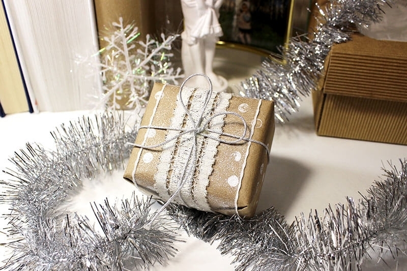 1. Заранее подготовьте подарок и заверните его крафтовой бумагой.