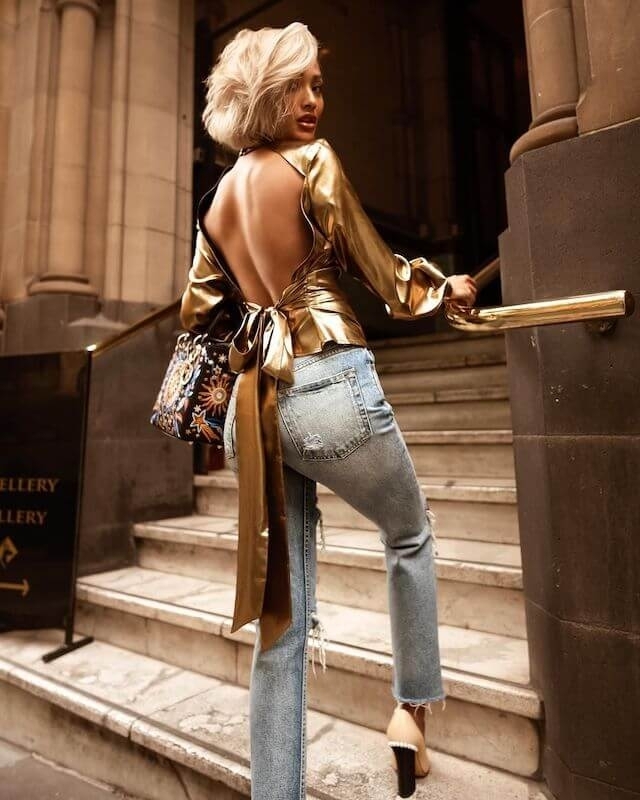Короткий топ + высокие джинсы = идеальный вариант для повседневной жизни. Такой летний образ подойдет для любого повода!