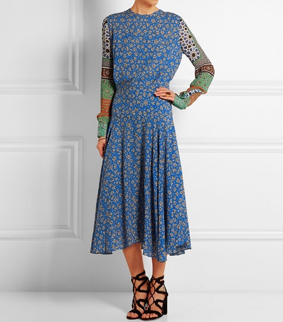 - платье Preen Line Sylia Printed Voile and Georgette Dress. Это принт линия. Платье с разноцветными цветами и напечатанными прозрачными вставками на рукавах.