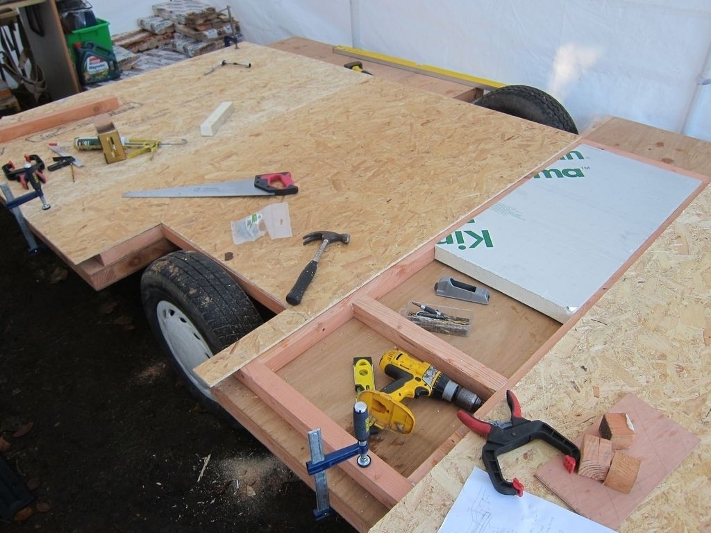 Готовый пол прикручивается болтами к шасси. Пол можно использовать как верстак и шаблон для изготовления стен. Снова используйте бруски толщиной 50 х 75 мм.