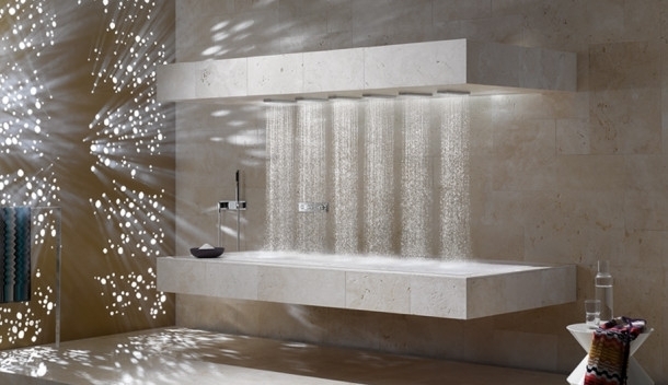 Тропический душ имитирует собой настоящий дождь, просто-таки тропический ливень. Монтируют его либо к потолку, либо прямо в него. Расстояние от пола, как вы понимаете, довольно большое, поэтому присутствие ручной небольшой лейки просто обязательно в системах такого типа.